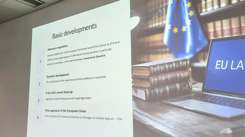 Eksperci Departamentu Usług Cyfrowych UKE zaprezentowali strukturę nowego europejskiego systemu nadzoru nad platformami internetowymi oraz rolę UKE w nowym ekosystemie nadzoru nad usługami cyfrowymi. Omówiono m.in. procedury reagowania na nielegalne treści, współpracę transgraniczną, wymianę danych między organami oraz znaczenie edukacji użytkowników i przedsiębiorców w nowym otoczeniu prawnym.